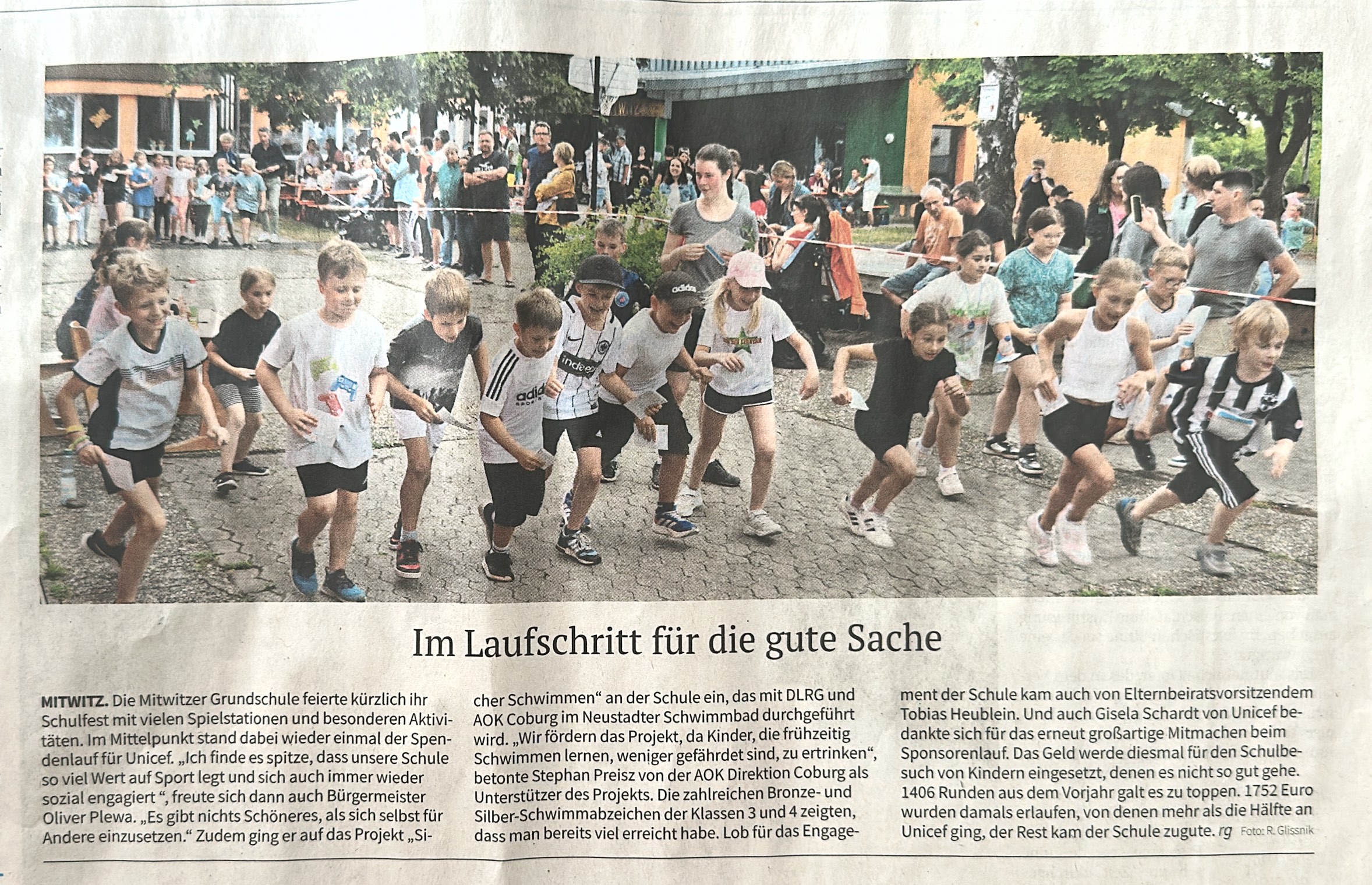 Am 28.06.2025 fand unser jährliches Schulfest zusammen mit dem Unicef-Sponsorenlauf statt. Darauf freuten sich unsere Schüler schon ganz besonders, denn sie hatten im Vorfeld schon fleißig Sponsoren für das Unicef-Hilfswerk gesammelt. Das Prinzip: Laufen für den guten Zweck, jede Runde zählt.