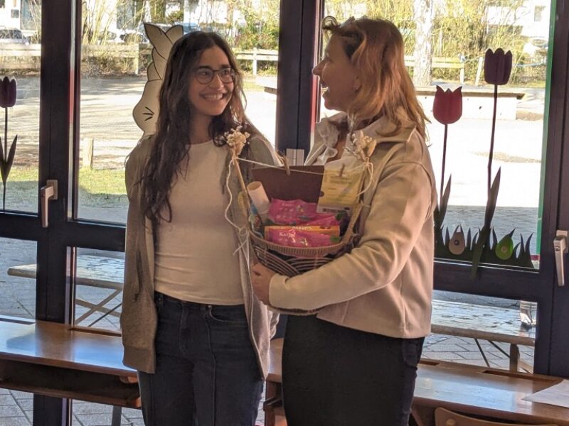 Da flossen viele Tränen: Nach 18 Monaten Dienst endete der Vertrag als Bundesfreiwilligendienst von Leyla Efe. Täglich unterstützte und arbeitete Leyla bei uns an der Schule. Stets hatte sie ein offenes Ohr für alle Belange und Herzensangelegenheiten unserer Schüler. Doch nun endete laut Vorgaben der Arbeitsagentur ihr Dienst im freiwilligen Jahr. Schmerzhaft war nach so langer Zeit der Abschied!